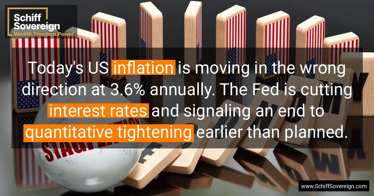 Today's US *inflation* is moving in the wrong direction at 3.6% annually. The Fed is cutting *interest rates* and signaling an end to *quantitative tightening* earlier than planned.