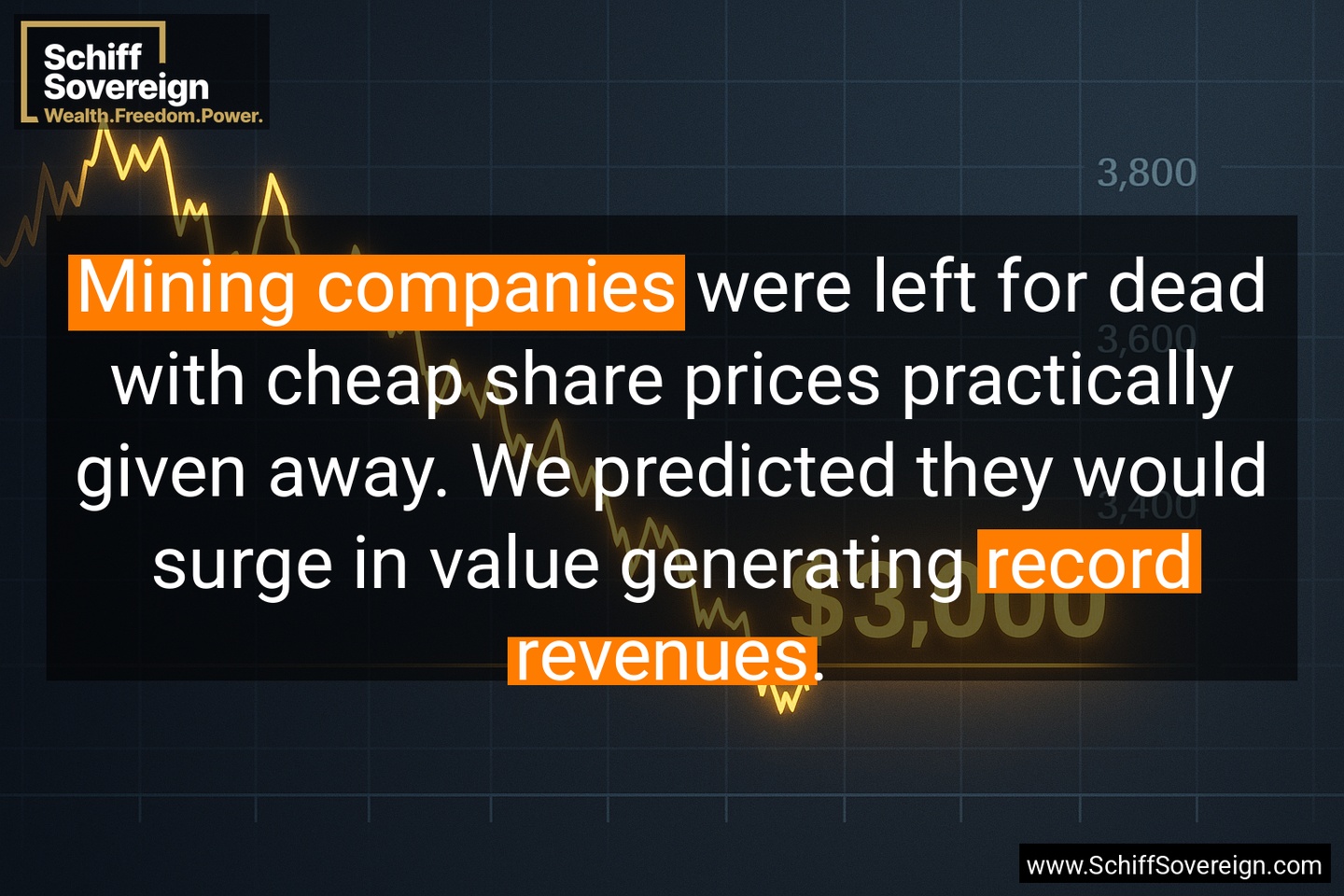 *Mining companies* were left for dead with cheap share prices practically given away. We predicted they would surge in value generating *record revenues*.