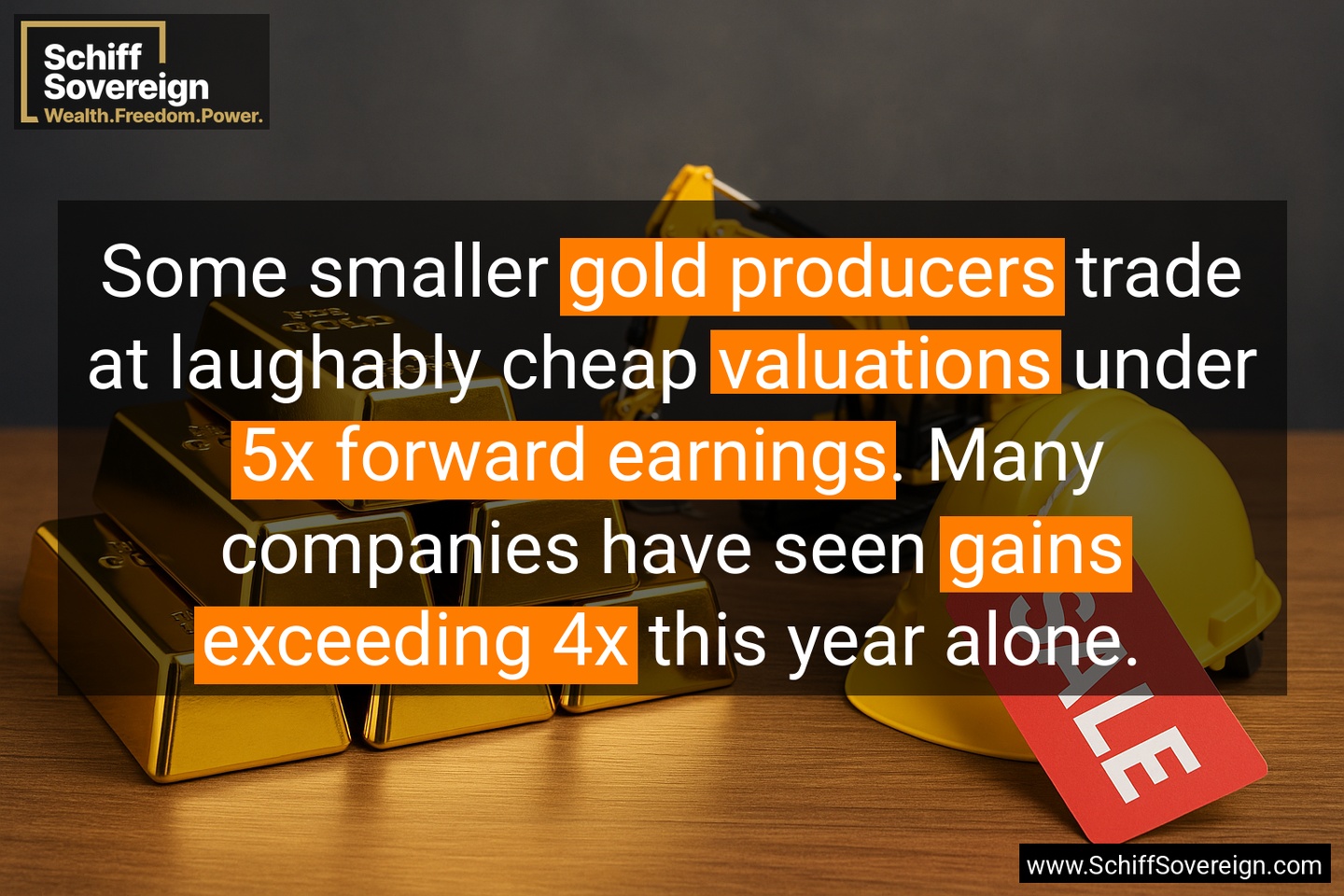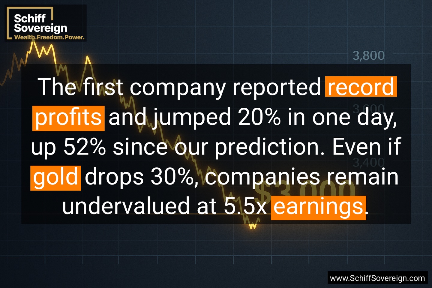 The first company reported *record profits* and jumped 20% in one day, up 52% since our prediction. Even if *gold* drops 30%, companies remain undervalued at 5.5x *earnings*.