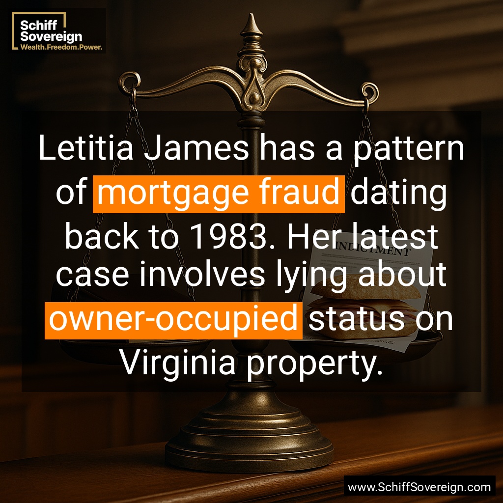 The same *mortgage fraud* allegations now target NY Attorney General Letitia James and Senator Adam Schiff. James ironically prosecuted Trump for similar crimes, but banks testified they weren't *defrauded* in his case.