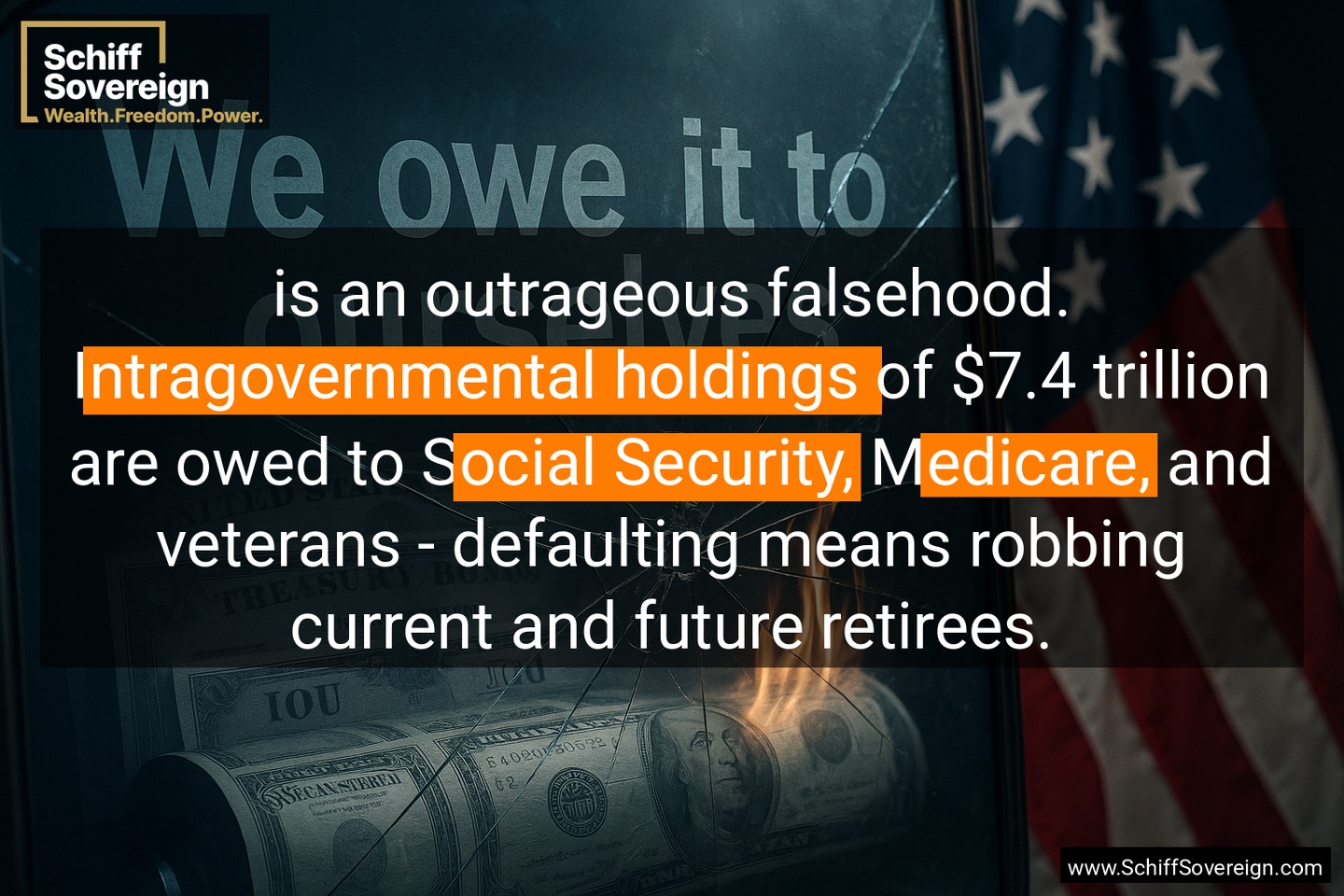 is an outrageous falsehood. *Intragovernmental holdings* of $7.4 trillion are owed to *Social Security*, *Medicare*, and veterans - defaulting means robbing current and future retirees.