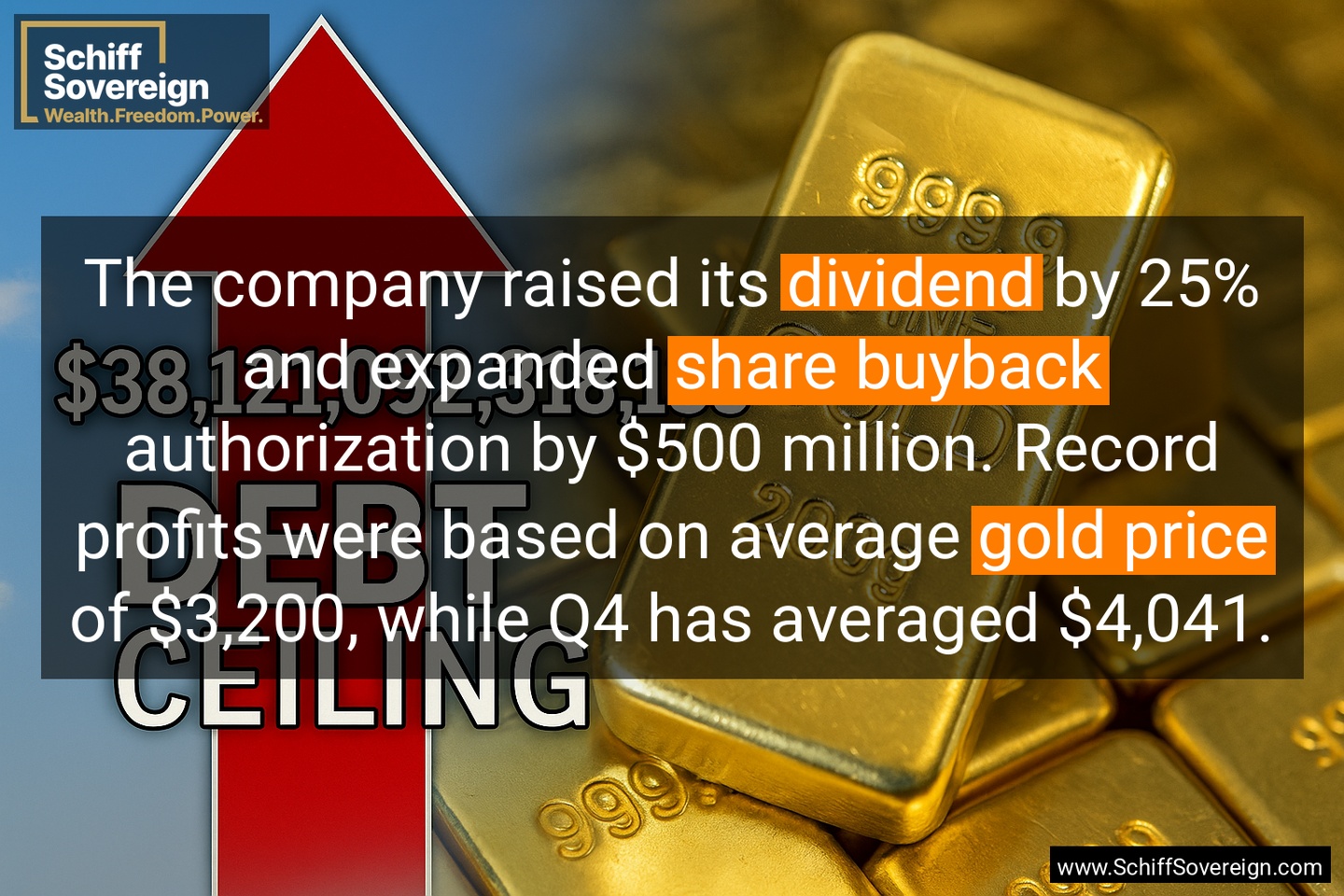 The company raised its *dividend* by 25% and expanded *share buyback* authorization by $500 million. Record profits were based on average *gold price* of $3,200, while Q4 has averaged $4,041.