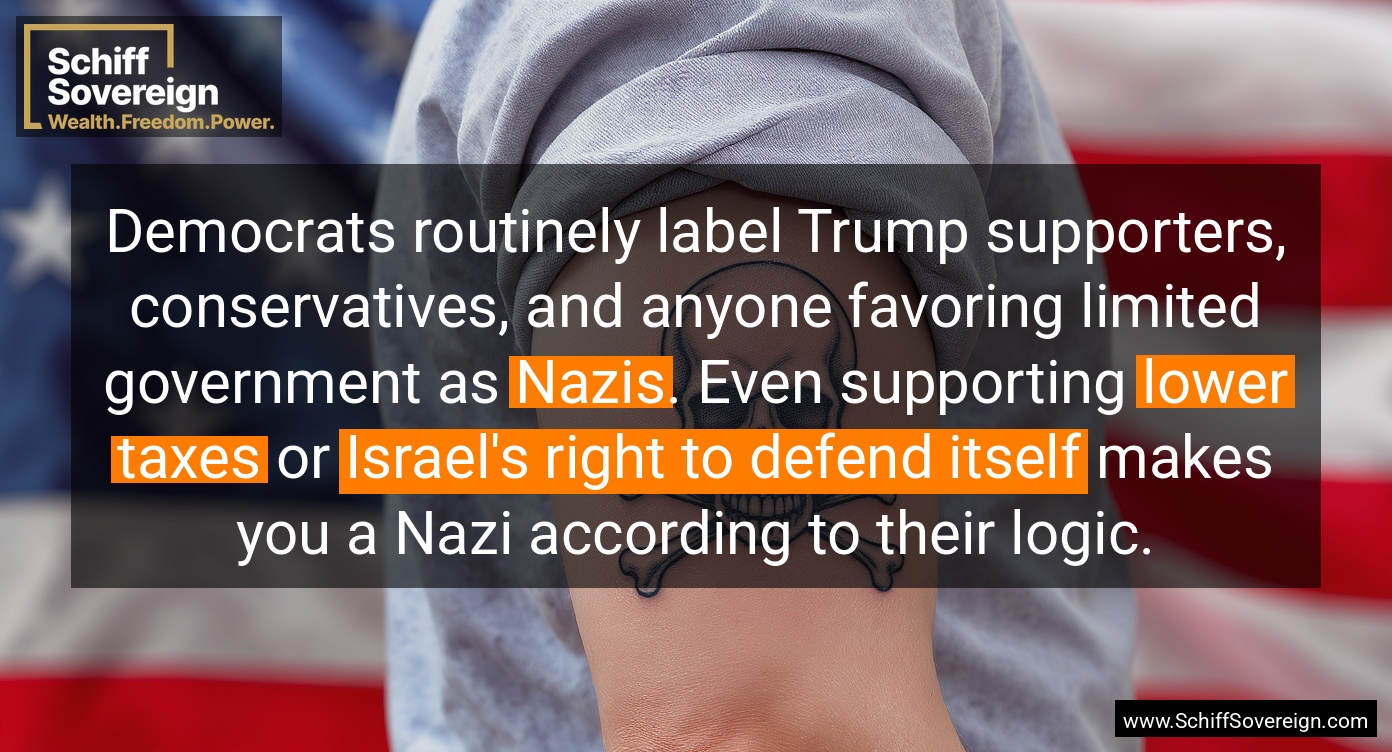 Democrats routinely label Trump supporters, conservatives, and anyone favoring limited government as *Nazis*. Even supporting *lower taxes* or *Israel's right to defend itself* makes you a Nazi according to their logic.