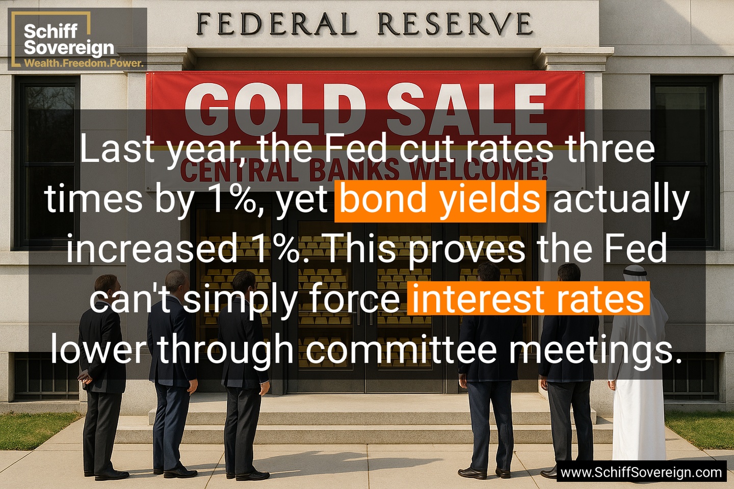 Most people think the *Fed* sets all interest rates, but they only control overnight *bank lending rates*. Everything else, from mortgages to government borrowing costs, is determined by the *bond market*.