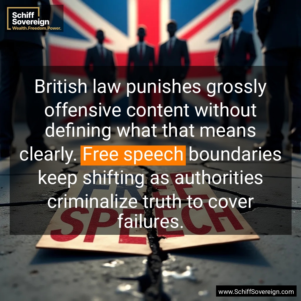 British law punishes grossly offensive content without defining what that means clearly. *Free speech* boundaries keep shifting as authorities criminalize truth to cover failures.