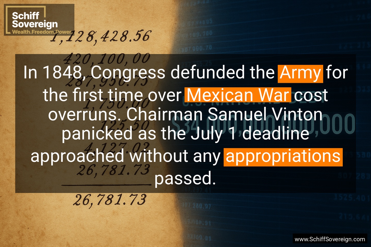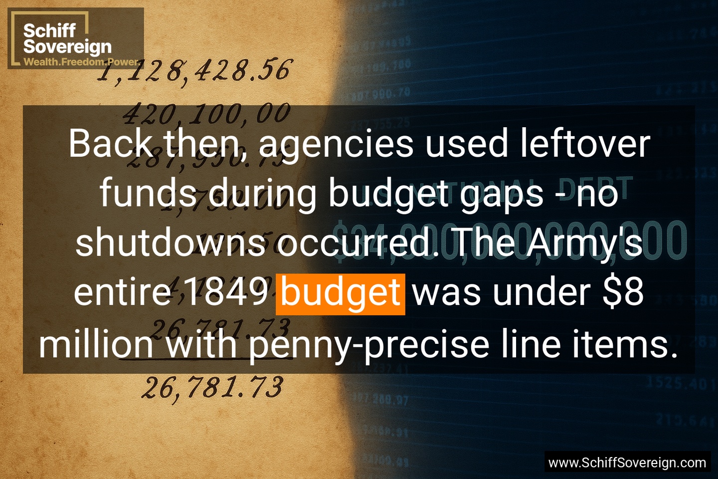 Back then, agencies used leftover funds during budget gaps - no shutdowns occurred. The Army's entire 1849 *budget* was under $8 million with penny-precise line items.