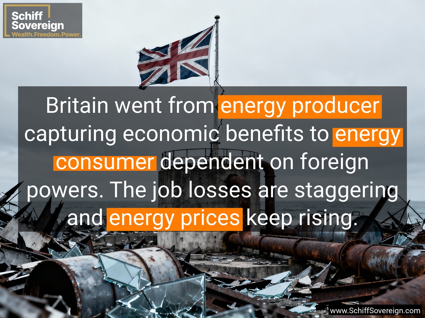 Britain went from *energy producer* capturing economic benefits to *energy consumer* dependent on foreign powers. The job losses are staggering and *energy prices* keep rising.