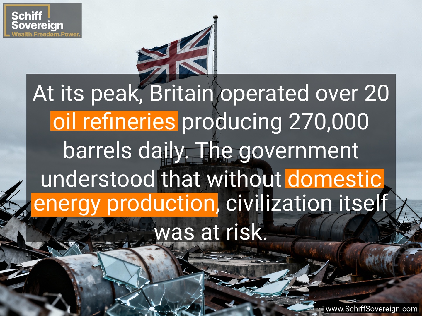 At its peak, Britain operated over 20 *oil refineries* producing 270,000 barrels daily. The government understood that without *domestic energy production*, civilization itself was at risk.