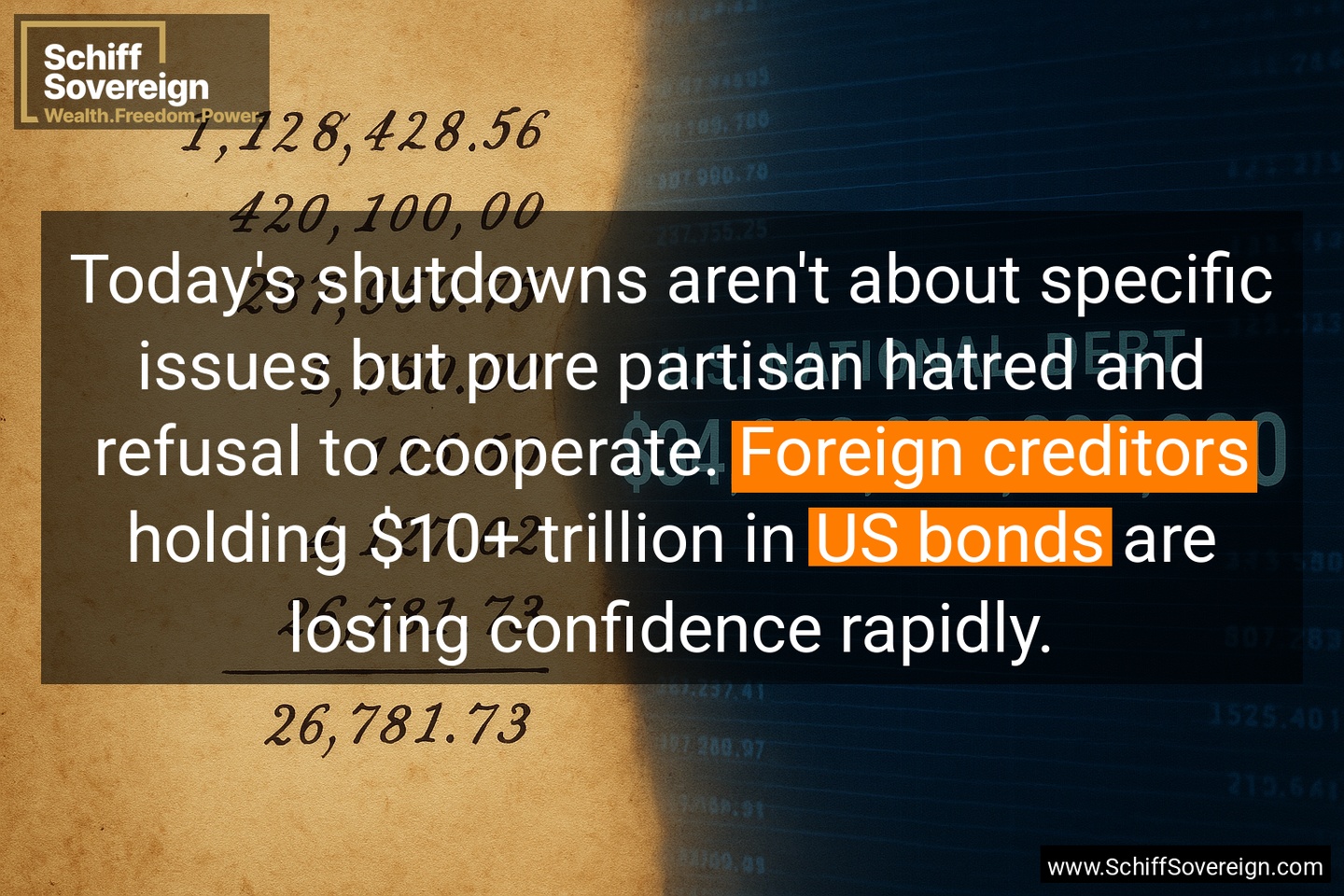 Today's shutdowns aren't about specific issues but pure partisan hatred and refusal to cooperate. *Foreign creditors* holding $10+ trillion in *US bonds* are losing confidence rapidly.
