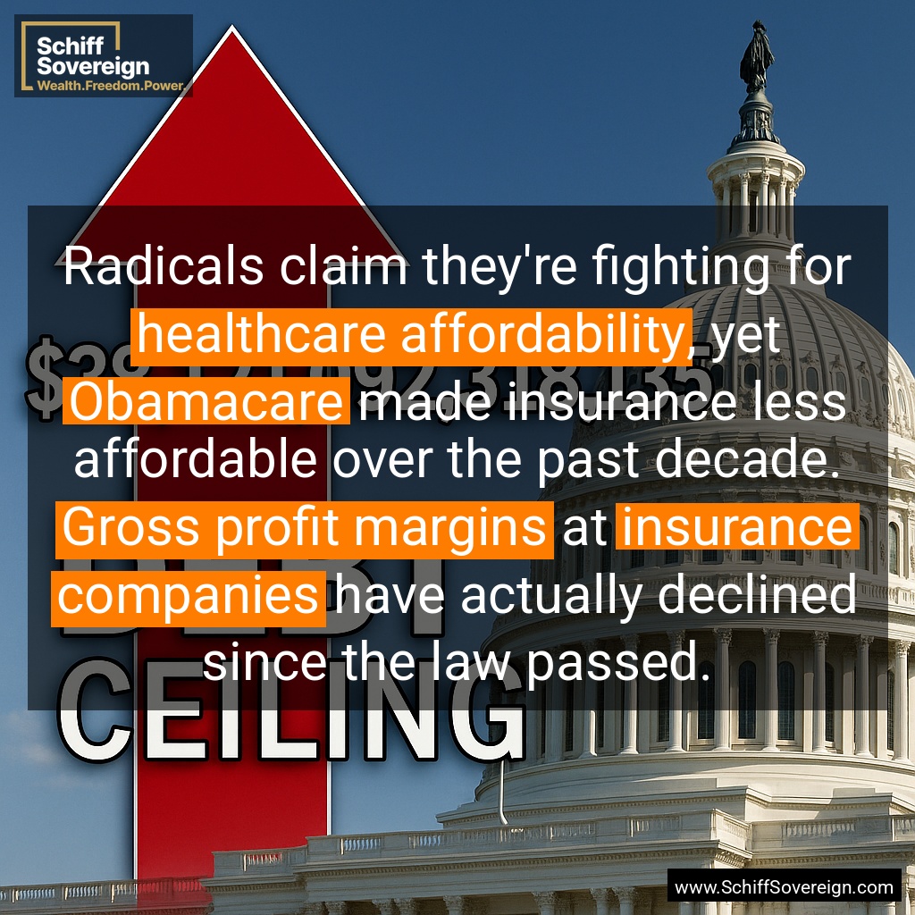 Radicals claim they're fighting for *healthcare affordability*, yet *Obamacare* made insurance less affordable over the past decade. *Gross profit margins* at *insurance companies* have actually declined since the law passed.