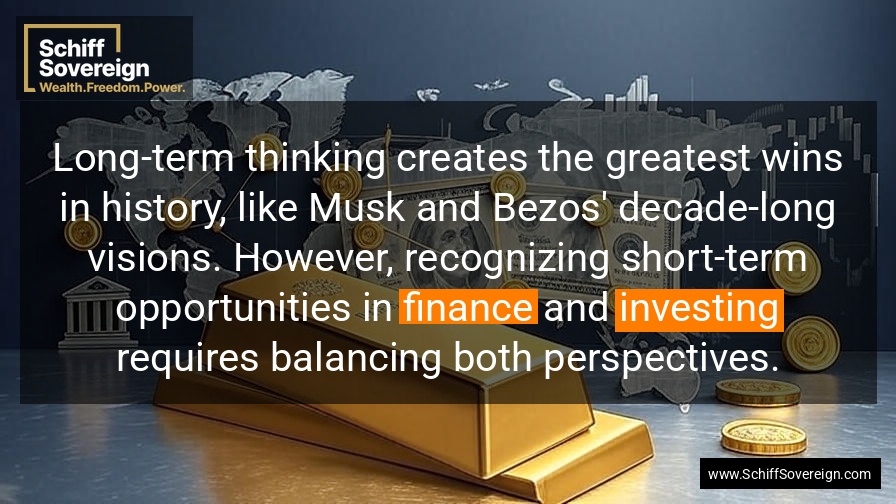 Long-term thinking creates the greatest wins in history, like Musk and Bezos' decade-long visions. However, recognizing short-term opportunities in *finance* and *investing* requires balancing both perspectives.