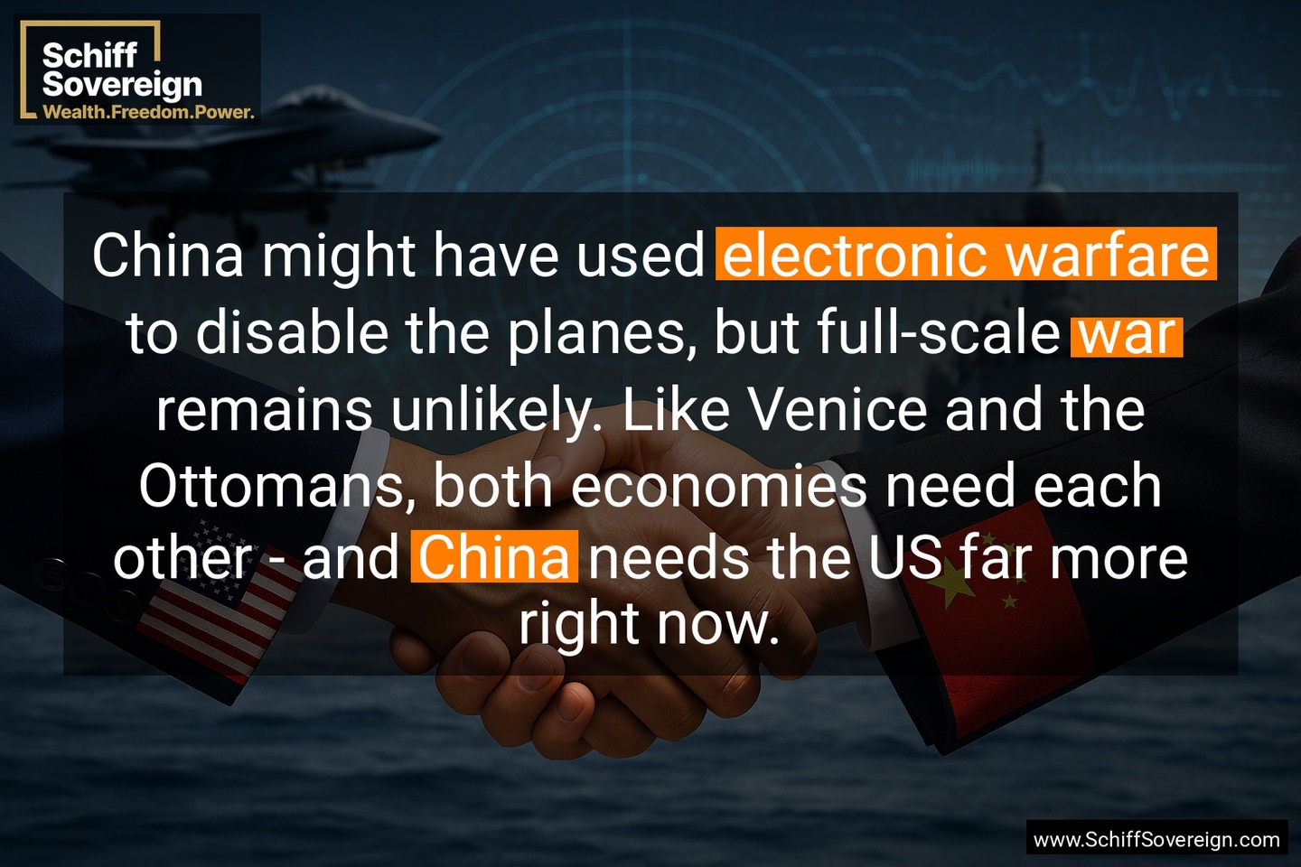China might have used *electronic warfare* to disable the planes, but full-scale *war* remains unlikely. Like Venice and the Ottomans, both economies need each other - and *China* needs the US far more right now.
