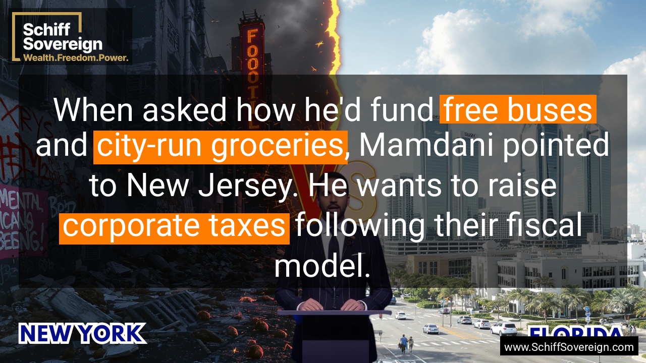 When asked how he'd fund *free buses* and *city-run groceries*, Mamdani pointed to New Jersey. He wants to raise *corporate taxes* following their fiscal model.