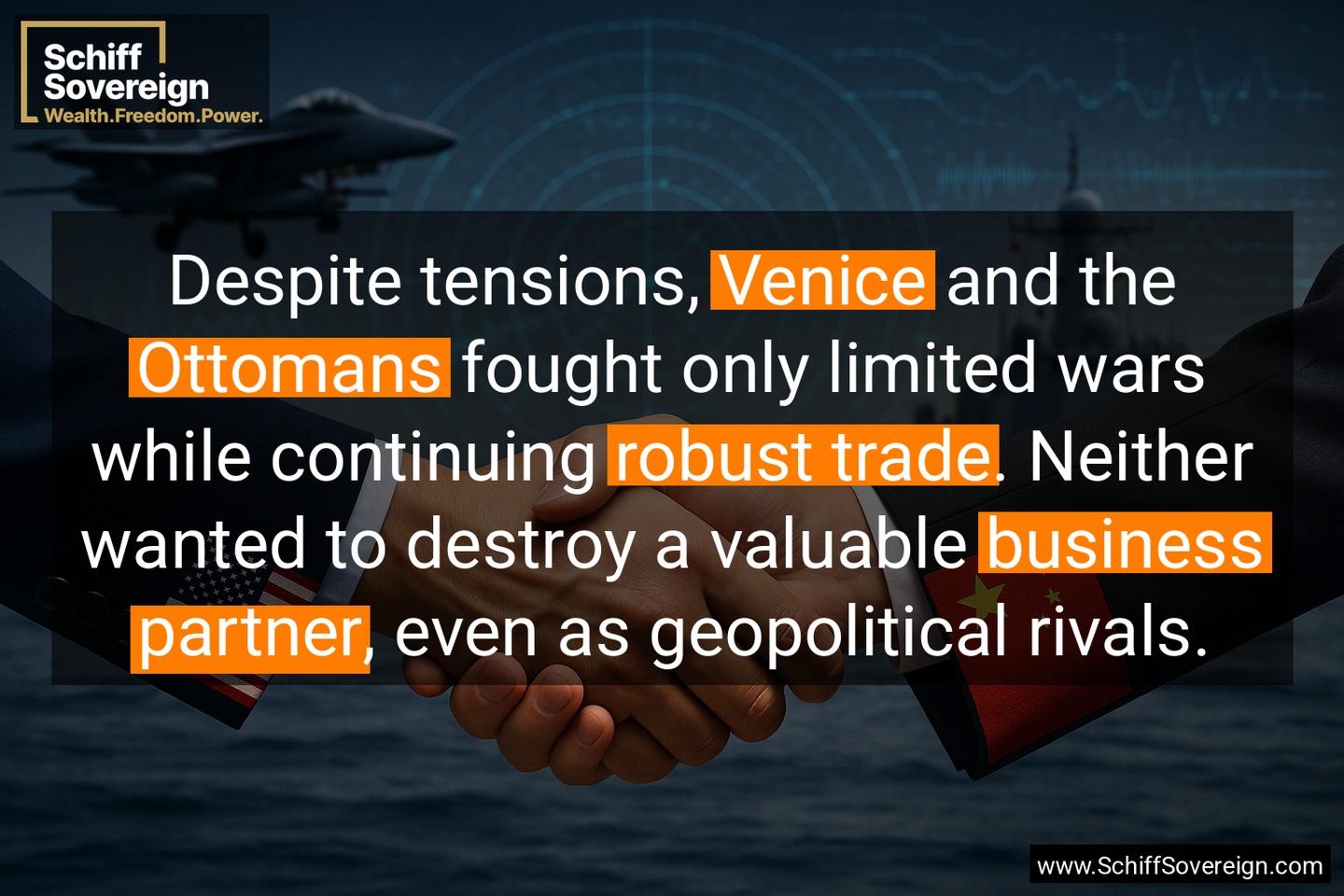 Despite tensions, *Venice* and the *Ottomans* fought only limited wars while continuing *robust trade*. Neither wanted to destroy a valuable *business partner*, even as geopolitical rivals.
