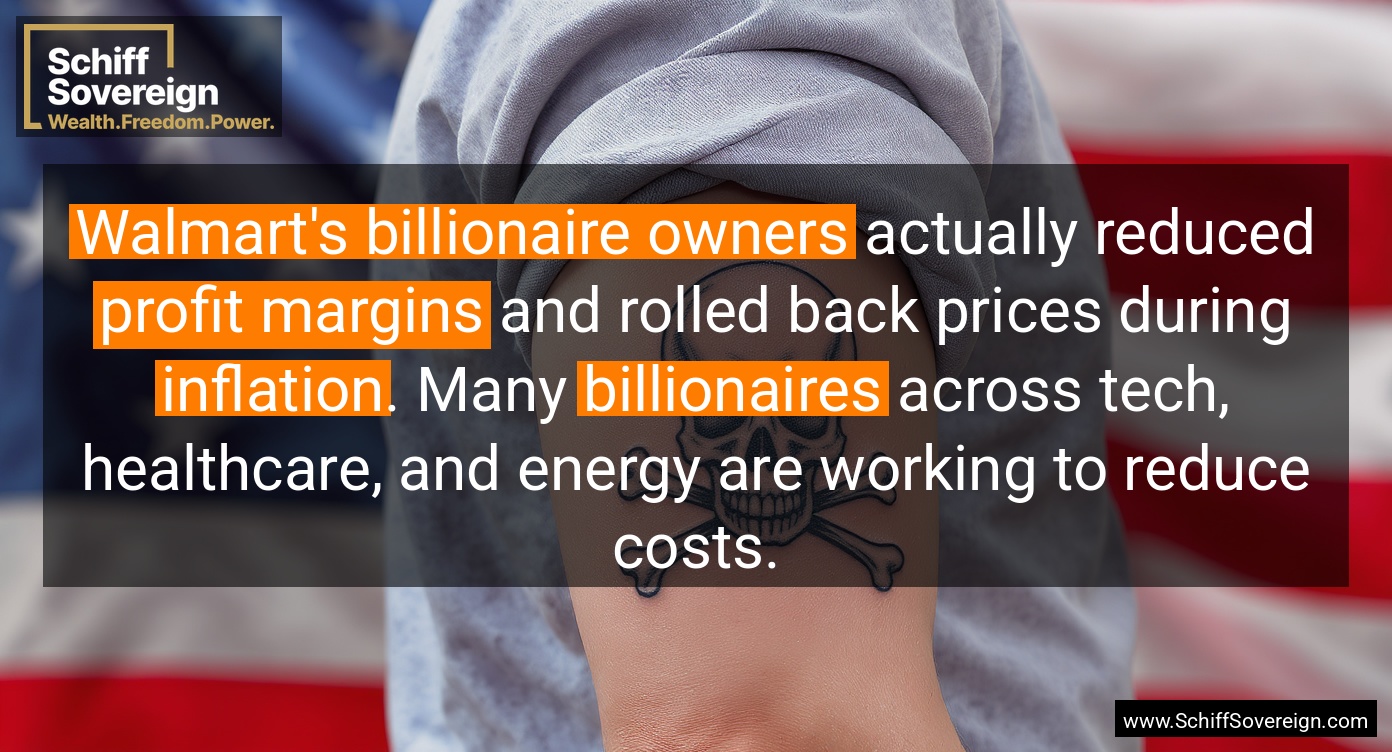 *Walmart's billionaire owners* actually reduced *profit margins* and rolled back prices during *inflation*. Many *billionaires* across tech, healthcare, and energy are working to reduce costs.
