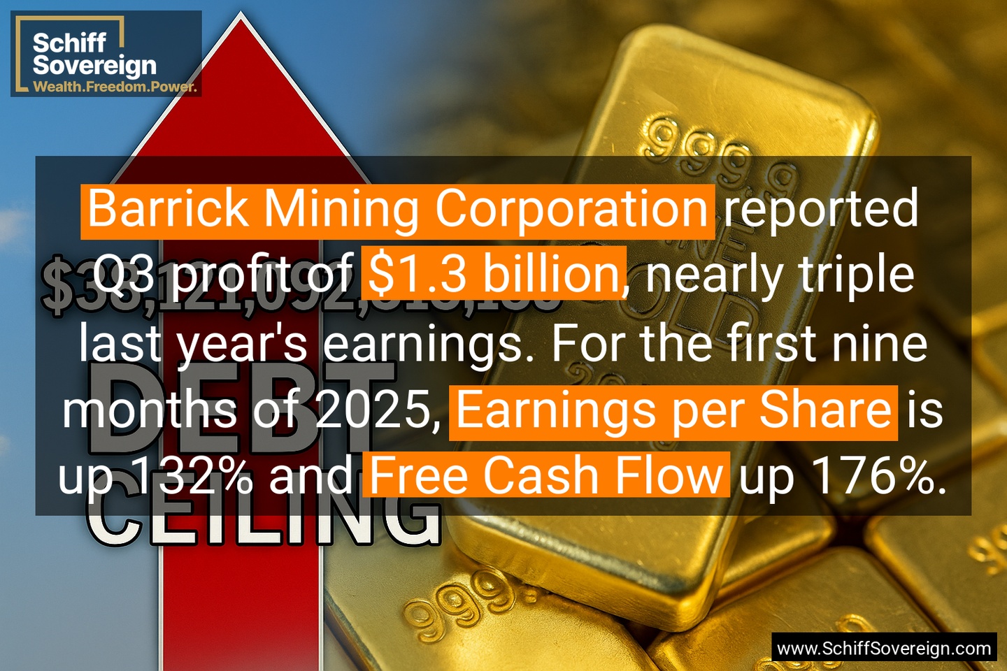 *Barrick Mining Corporation* reported Q3 profit of *$1.3 billion*, nearly triple last year's earnings. For the first nine months of 2025, *Earnings per Share* is up 132% and *Free Cash Flow* up 176%.